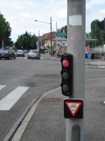 Depuis début 2012, la réglementation de la signalisation routière donne la possibilité aux collectivités locales d’autoriser les cyclistes à réaliser un cédez-le-passage à la place d’un arrêt au feu rouge. En clair, cela signifie que le cycliste peut franchir un feu au rouge tout en respectant les dispositions du code de la route : céder le passage aux piétons et aux automobilistes qui ont le feu vert.