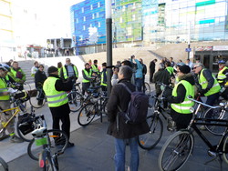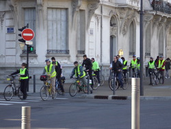Le parcoursavait été choisi pour souligner quelques points noirs : le passage souterrain de la gare qu’il faut prendre à pied, l’étroit double sens cyclable de l’avenue Général de Gaulle qui se termine brutalement sur un trottoir, le rond point du 4° pont où il n’y a plus de feux pour laisser passer les piétons et cyclistes en sécurité, des rues où on est étroitement mêlé au trafic automobile comme l’avenue de Bompas et le pont Joffre où les vélos se sentent vulnérables. En revanche le groupe a été constater avec satisfaction le début des travaux de la passerelle tant attendue sur la Têt entre le théâtre et l’avenue Torcatis, et l’onpouvait percevoir aussi le plaisir de pédaler librementsous le soleil dans les quelques tronçons sécurisés.